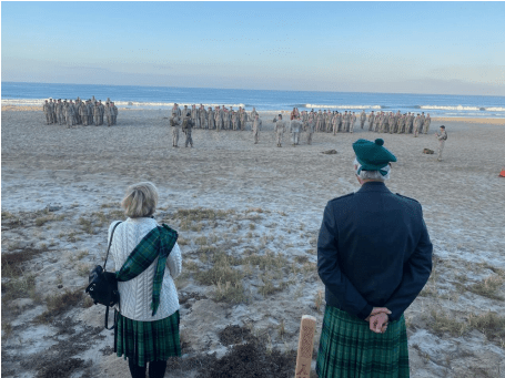 On 20 October 2022, Jim and Joann Helmich traveled to Camp Pendleton, California to make a presentation on behalf of Clan Arthur to Company A “Arthur Company,” 1st Light Armored Reconnaissance Battalion, USMC.